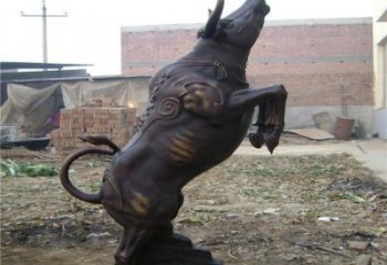 銅雕耕地牛象征農耕文化的力量