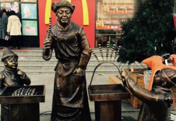 步行街的銅雕傳承傳統(tǒng)文化的銅雕打鐵人物